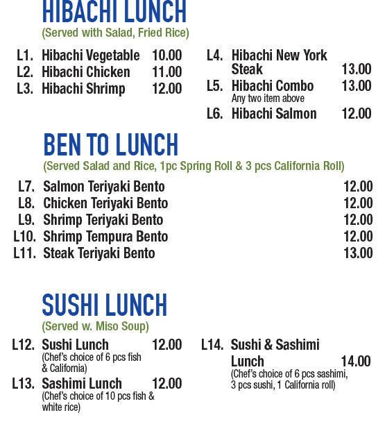 Tues-Sat: 11:00am-2:30pm, Sunday & Holiday Excluding